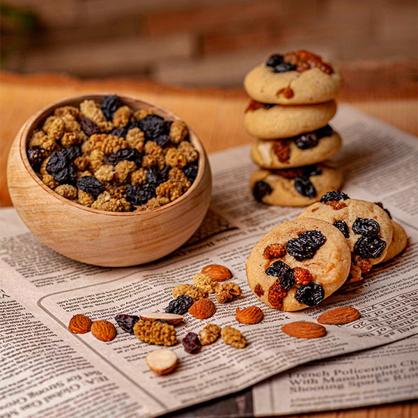 ترکیبات اصلی: شکر قهوه ای - کره حیوانی - توت و مویز