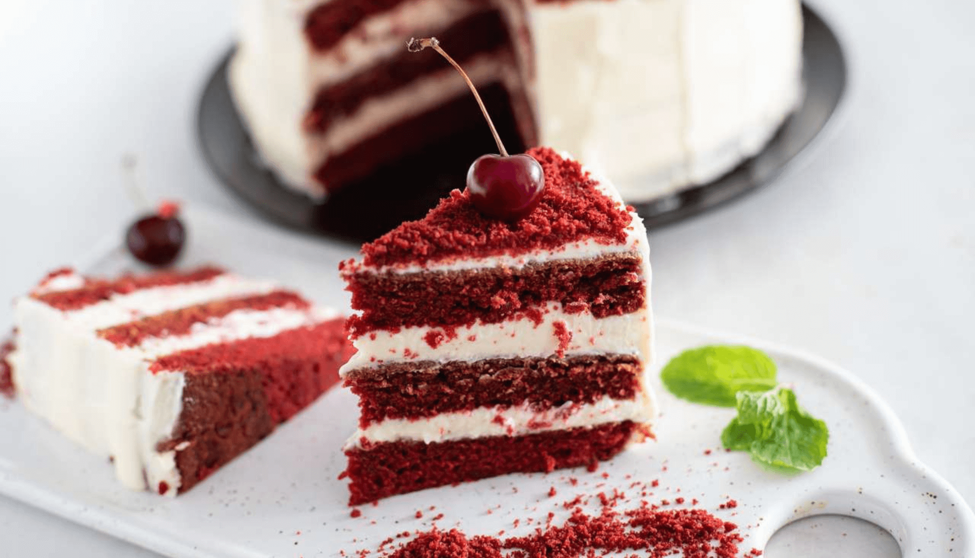 ترکیبات اصلی: اسفنج ردولوت - خامه - فیلینگ توت فرنگی
