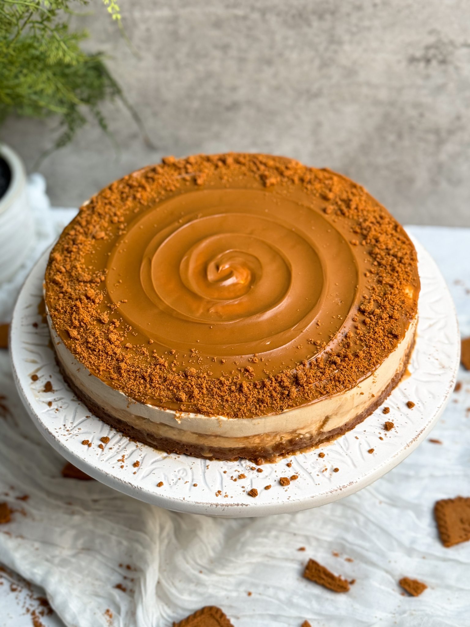 ترکیبات اصلی: بیسکوئیت لوتوس - پنیر خامه ای - خامه قنادی - تکه های لوتوس