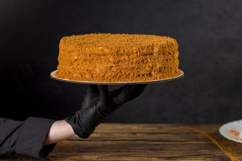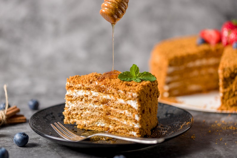 ترکیبات اصلی: بیسکوئیت مدوویک - خامه - عسل